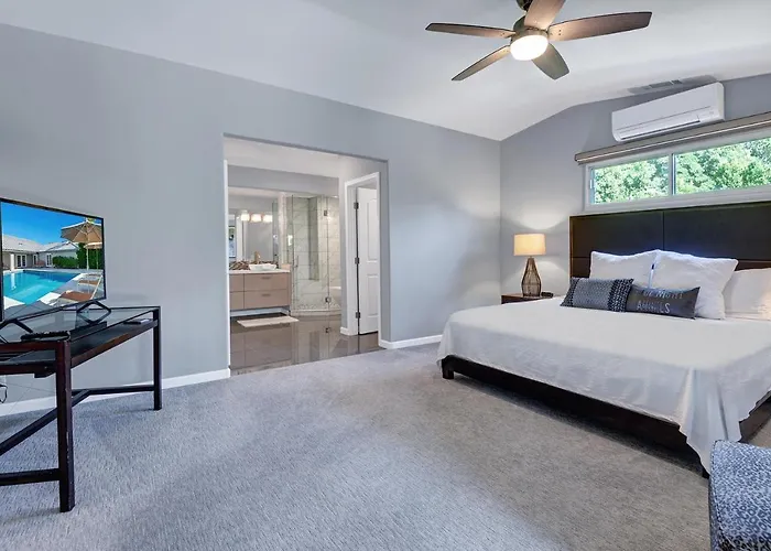 Deze 3-slaapkamer 2 Pools So Cool - Alice Lodging Palm Springs villa ligt op ongeveer 6 km van het Wet'n'Wild Palm Springs waterpark en biedt een casino voor de gasten. Het vakantiehuis biedt een bubbelbad en bevindt zich op ongeveer 10 minuten met de auto van het Palm Springs Air Museum.
